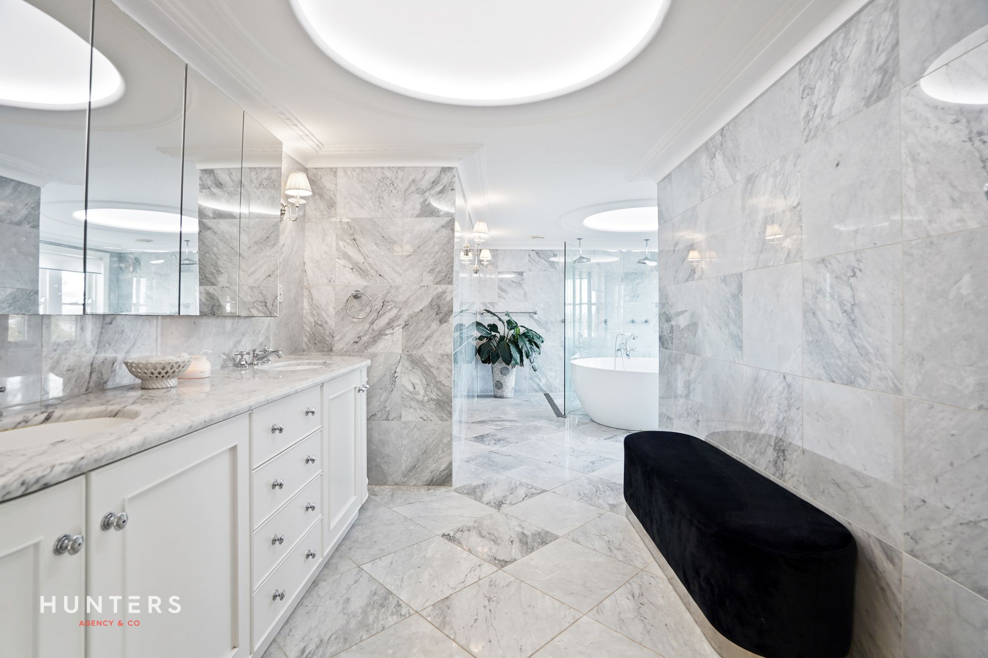 Designed for comfort and functionality, the home features ample storage throughout, ducted air conditioning, a state-of-the-art alarm system, and CCTV security, offering peace of mind and effortless living. Each generously sized bedroom includes built-in wardrobes and direct access to a private terrace, creating tranquil spaces for rest and retreat. The luxurious main bathroom is a showpiece in itself, adorned with imported Italian Carrara marble and a double shower-an opulent sanctuary to unwind in.