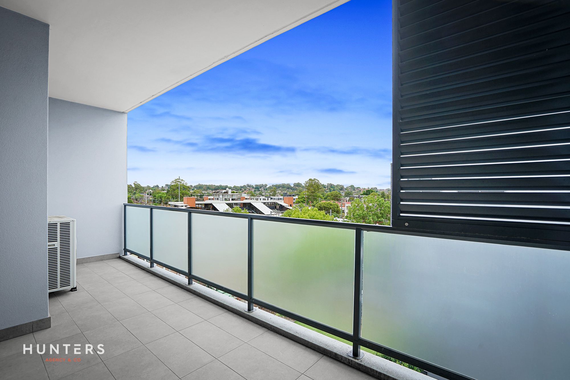 - Sun-filled north-facing balcony with laminated timber flooring