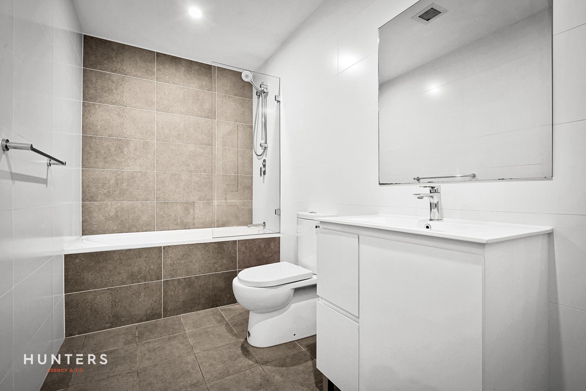 - Modern fully tiled bathroom with bathtub + ensuite to the master bedroom