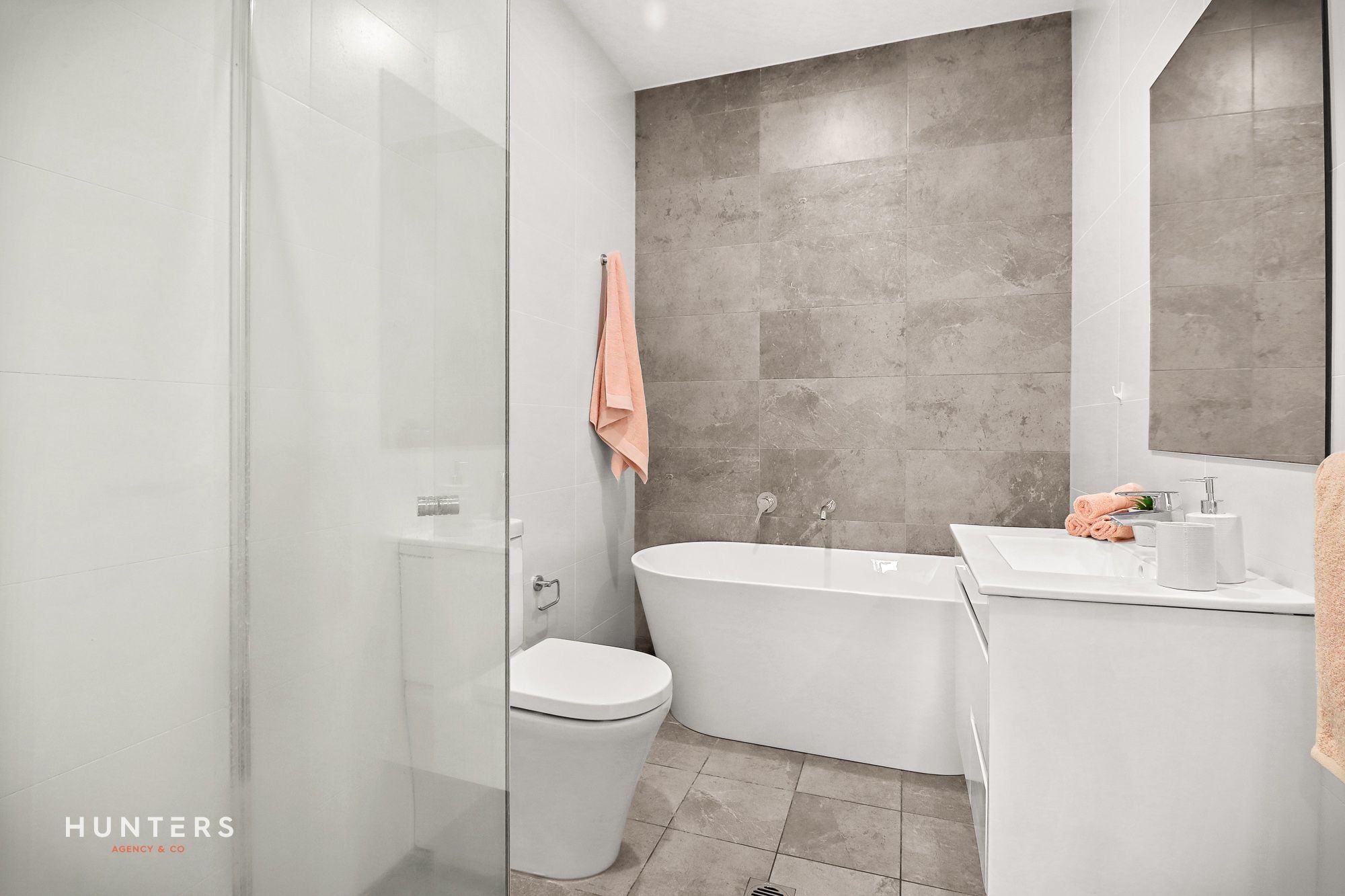 • Two stylish bathrooms with floor-to-ceiling tiles, main bathroom featuring a freestanding bathtub