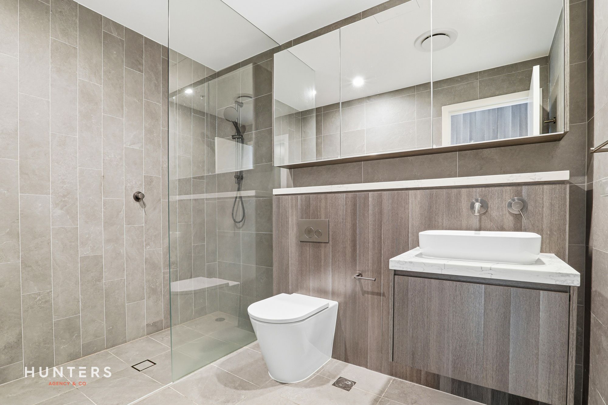 Modern bathrooms are beautifully appointed with full-height wall tiles, timber accents, frameless glass showers and concealed cisterns, while additional highlights include: